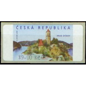 Automatová známka ČR č. AU 2A, nominále *9,00 Kč, s hvězdičkou před hodnotou, Hrad Zvíkov.