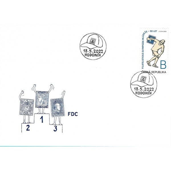 Obálka FDC ke známce ČR č. 1160, 50. výročí Filatelistické olympiády mládeže.