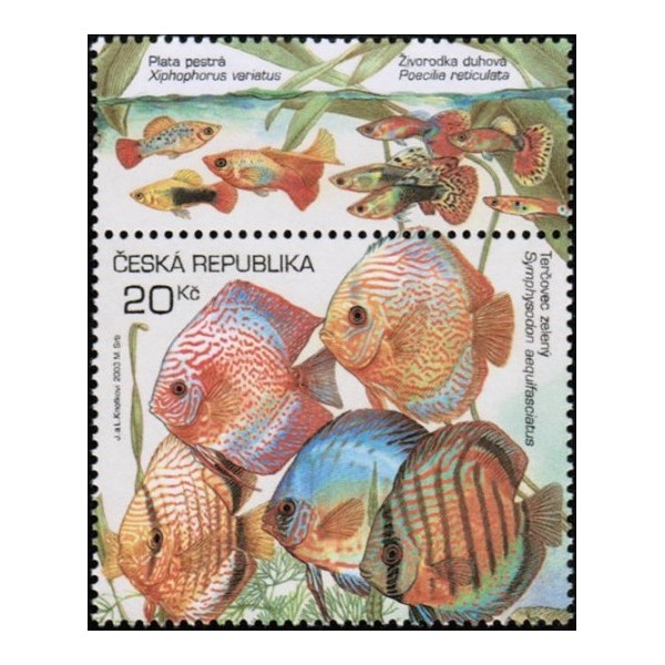 Poštovní známka z aršíku ČR č. A365/368 - známka č. 368 s horním kuponem, Akvarijní rybičky.