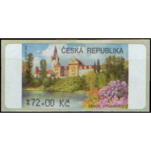 Automatová známka ČR č. AU 4F, nominále *72,00 Kč, s hvězdičkou před hodnotou, Zámek Průhonice.