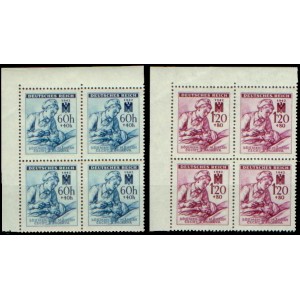Série poštovních známek z Protektorátu Čechy a Morava č. 100 a 101 - Německý Červený kříž (dobročinné známky), ** (čisté), 4bloky, levý horní roh.