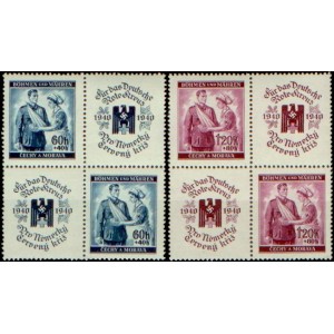 Série poštovních známek z Protektorátu Čechy a Morava č. 50 a 51 ve 4blocích - Německý Červený kříž (dobročinné známky), ** (čisté).