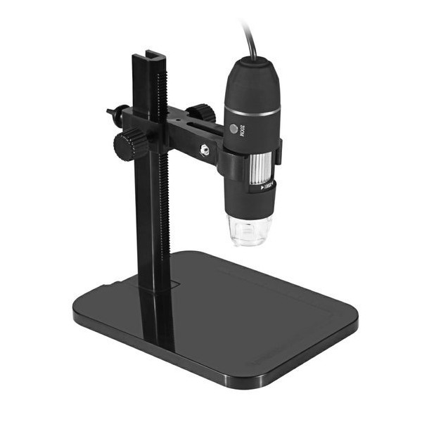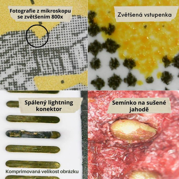 Digitální mikroskop s USB připojením k počítači, který umožňuje detailní sledování tiskových chyb na poštovních známkách, fotografování a nahrávání videa. Součástí balení je praktický stojan.