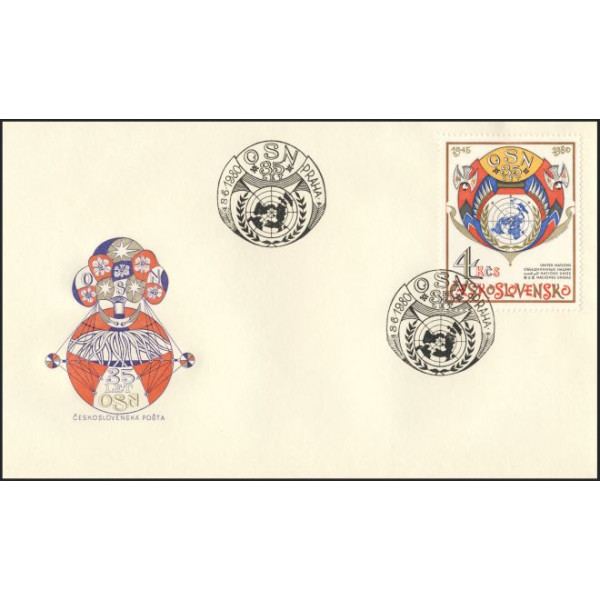 Obálka FDC známky ČSSR č. 2442, 35. výročí založení Organizace spojených národů.