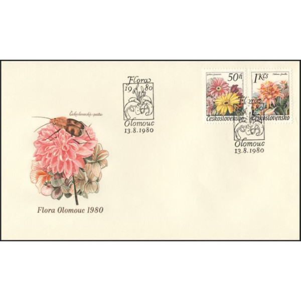 Série obálek FDC známek ČSSR č. 2445 až 2448, Květiny - Flóra Olomouc a Flóra Bratislava.