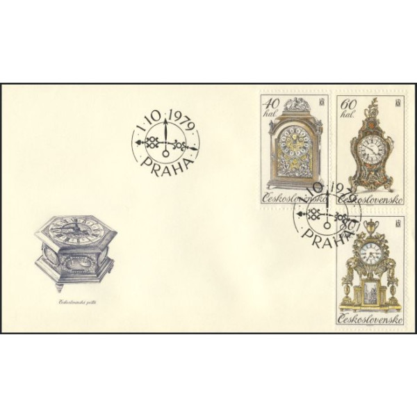 Série obálek FDC ke známkám ČSSR č. 2400 až 2404, Historické hodiny.