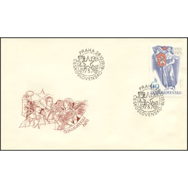 Obálka FDC ke známkce ČSSR č. 2346, 60 let Československé republiky.
