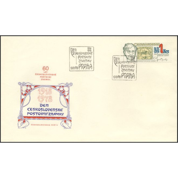 Obálka FDC ke známkce ČSSR č. 2355, Den československé poštovní známky - Alfons Mucha.