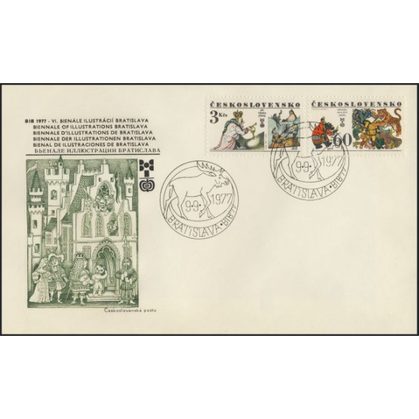 Série obálek FDC ke známkám ČSSR č. 2267 až 2271, VI. Bienále ilustrací Bratislava 1977.
